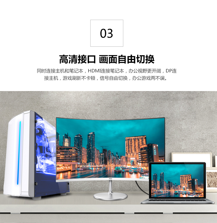 • 特性: 27英寸 曲面 HDMI接口 DP接口 VA广视角 1700R中心曲率 时尚薄型美背外观设计,1.5mm窄边框,5.2mm窄画面黑边,高贵典雅