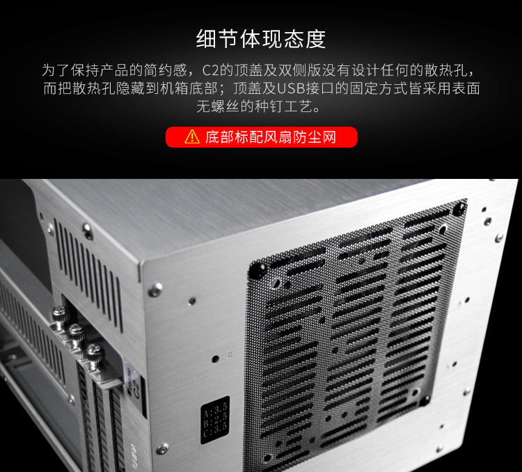 乔思伯(JONSBO)C2 银色 MINI机箱(支持24.5*21.5CM尺寸内主板/全铝机箱/ATX电源/80MM高内散热器)