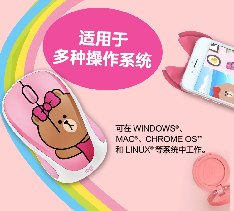罗技(Logitech)LINE FRIENDS系列 鼠标 无线鼠标 办公鼠标 女性鼠标 可妮兔CONY 自营 带无线2.4G接收器