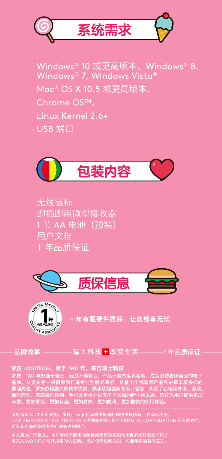 • 型号: 罗技?LINE FRIENDS?无线鼠标