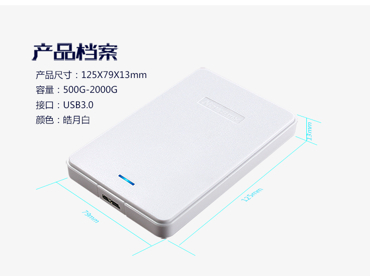 商品名称:纽曼(Newsmy)500GB USB3.0 移动硬盘 星云 2.5英寸 皓月白 海量数据备份存储 稳定耐用